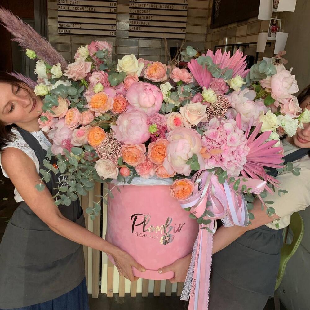 Пион – 15 шт.Гортензия – 2 шт.Роза кустовая – 11 шт.Роза – 5 шт.Сухоцветы – 3 шт.Эвкалипт – 1 шт.