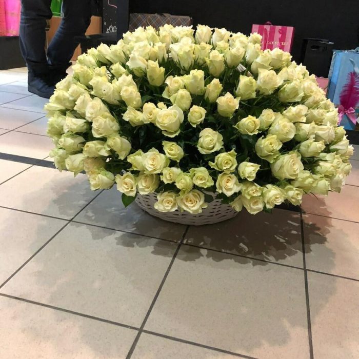 Корзина белых роз