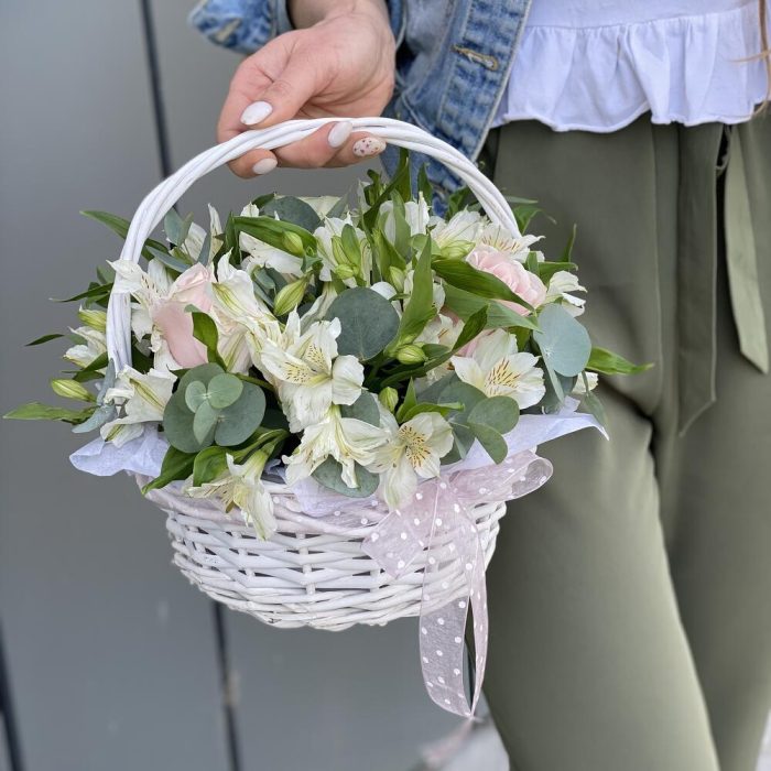 Корзинка из роз и альстромерии с эвкалиптом!