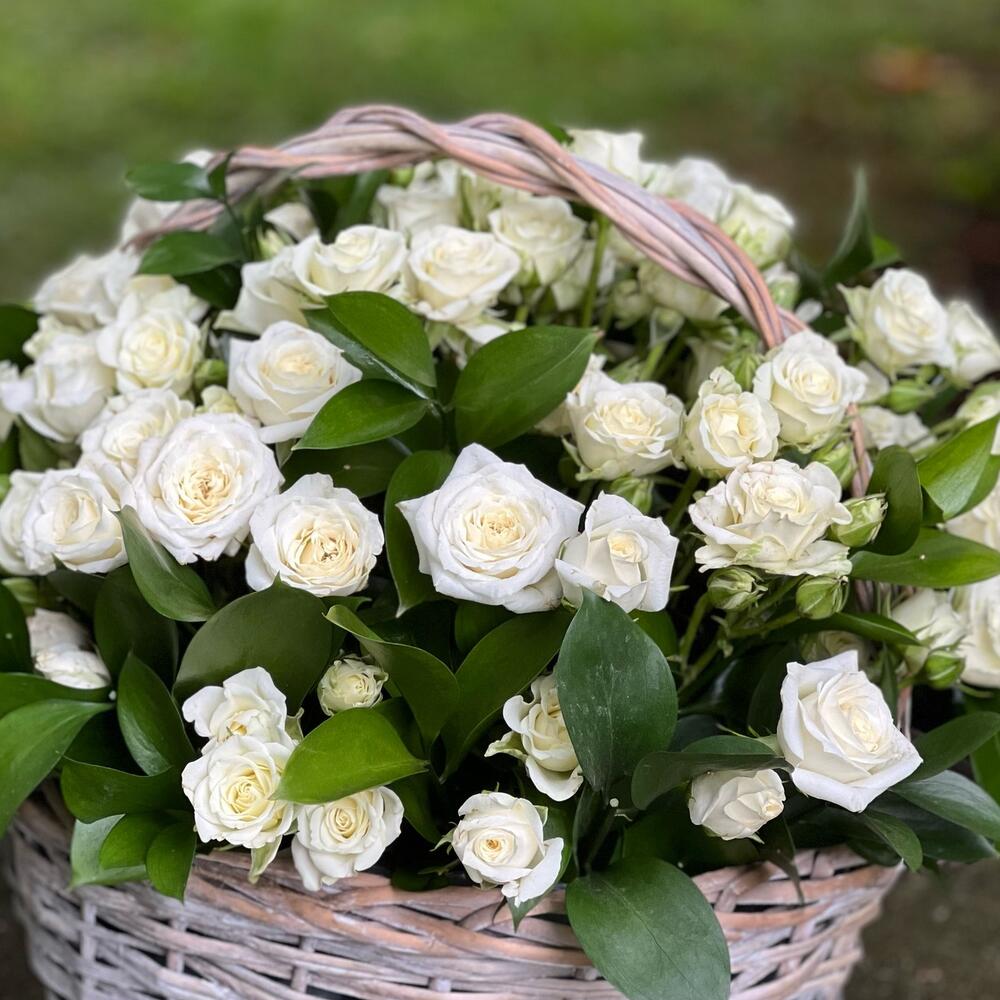 Торжественная Корзина с белыми розами.