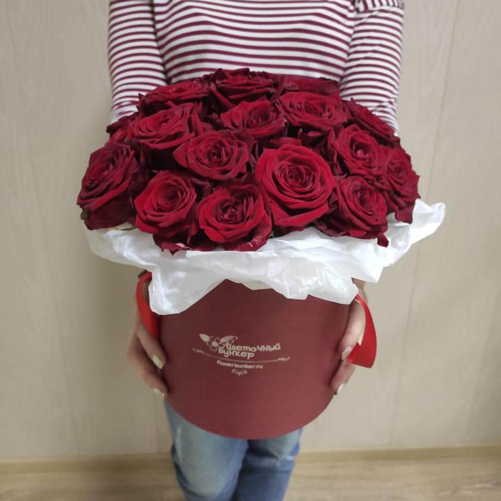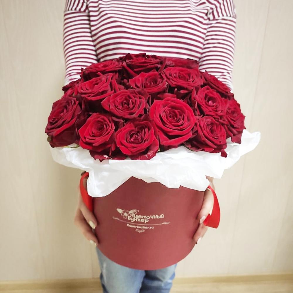 Красные розы в шляпной коробке