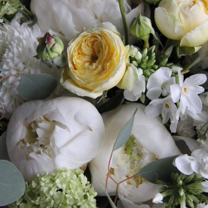 Лимонный щербет – Букет с пионами и пионовидными розами