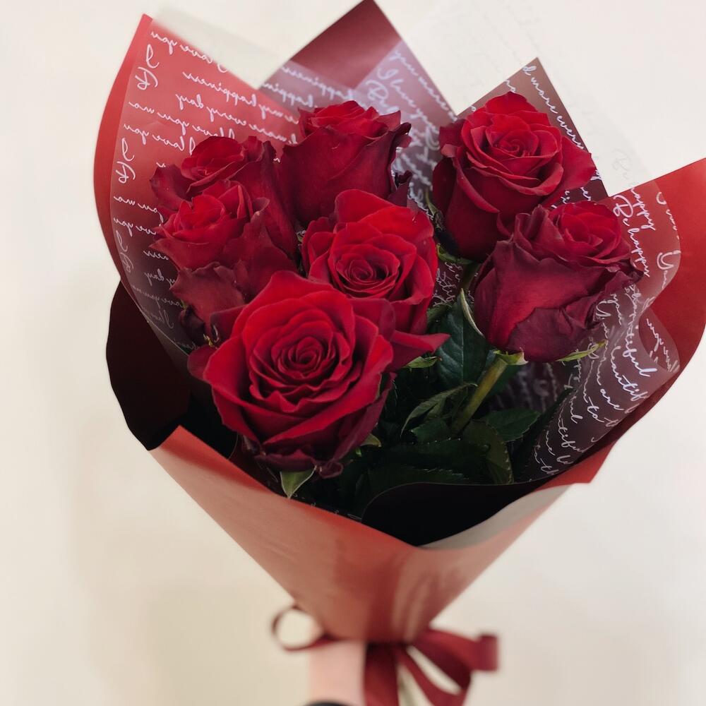 Роза Эквадор – 7 шт.Упаковка дизайнерская – 1 шт.Лента атласная – 1 шт.