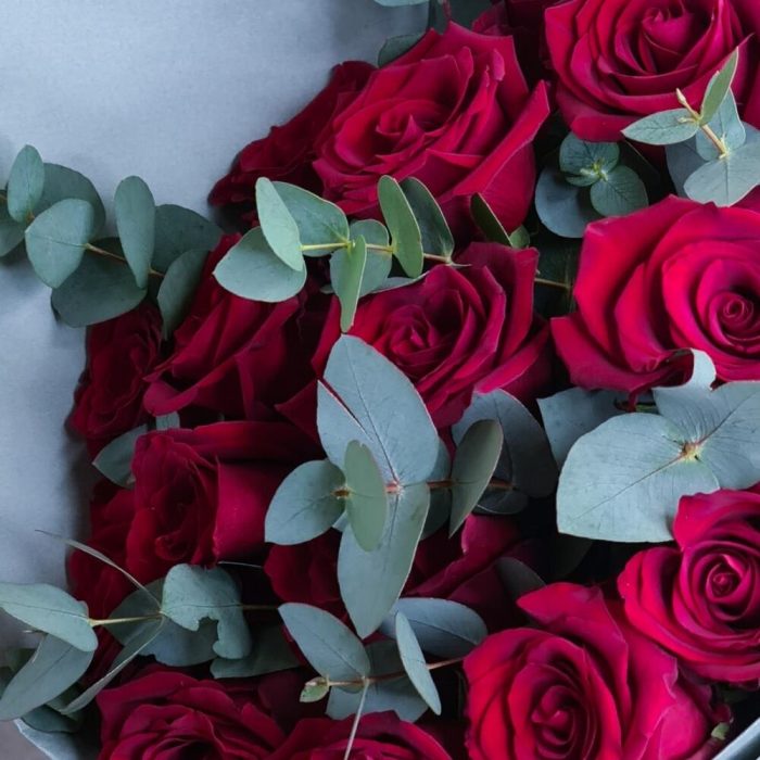 розы эксплорер эквадор – 15 шт.Эвкалипт – 9 шт.Упаковка дизайнерская – 1 шт.