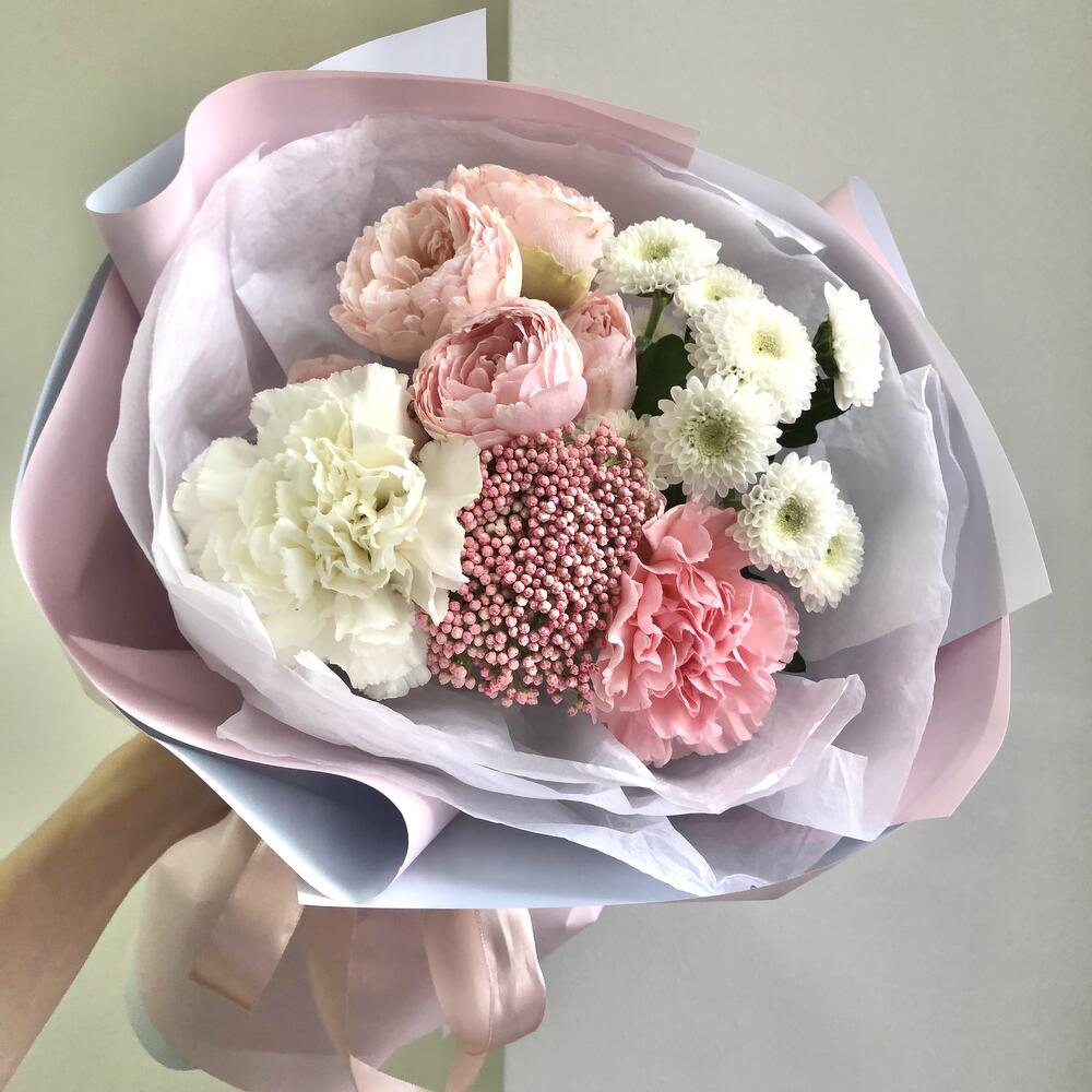 Гвоздики, Кустовые розы, Лизиантусы, Пионовидные розы, Розы