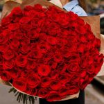 Огромный букет красных роз с большим бутоном, для тех кто любит произвести впечатление