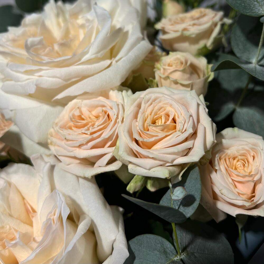 Кустовые розы, Лизиантусы, Розы, Сухоцвет
