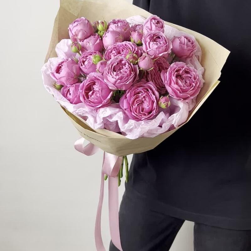 Лента – 2 шт.Упаковка – 2 шт.Роза кустовая пионовидная – 5 шт.