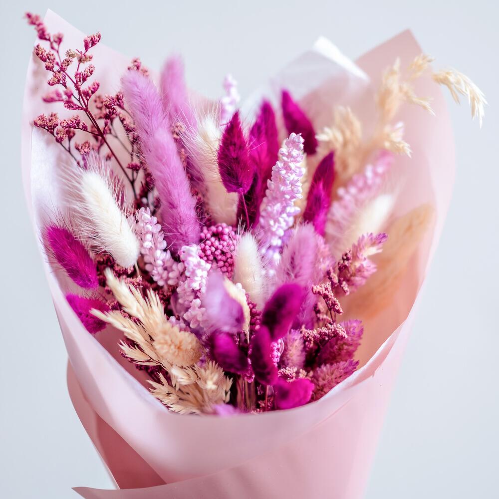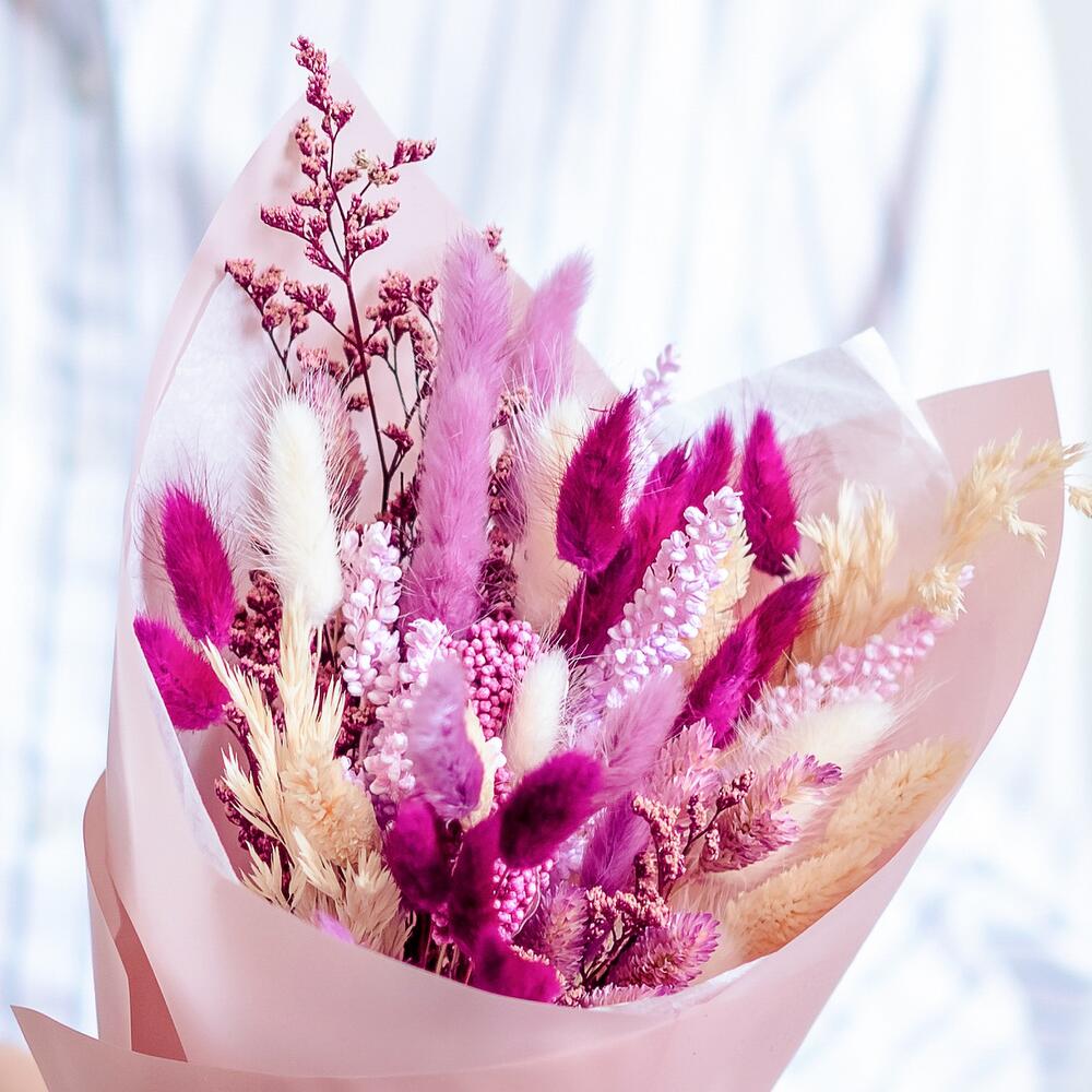 Букет из сухоцветов в розово-лиловых тонах