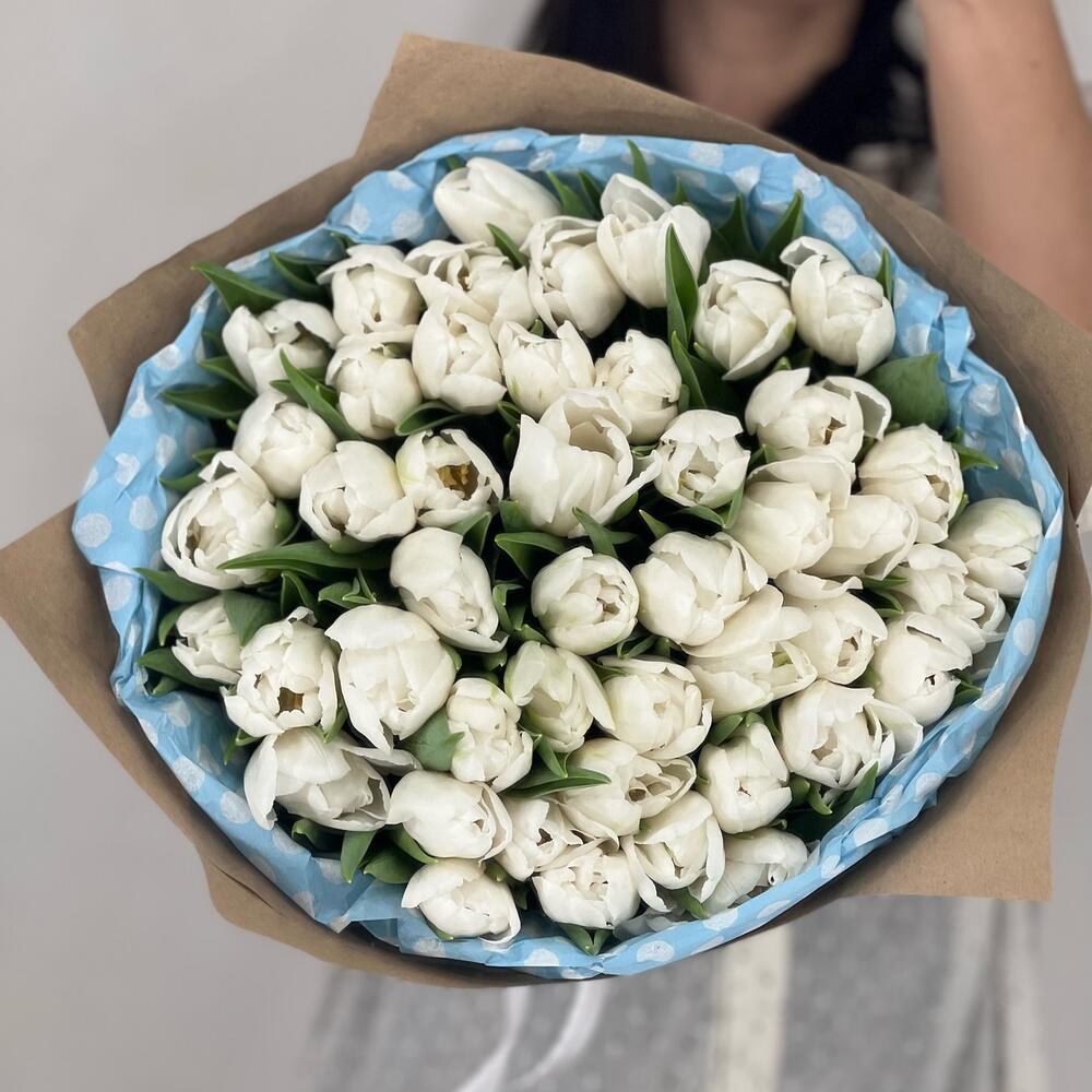 Лента – 2 шт.Упаковка – 2 шт.Белый пионовидный тюльпан – 49 шт.