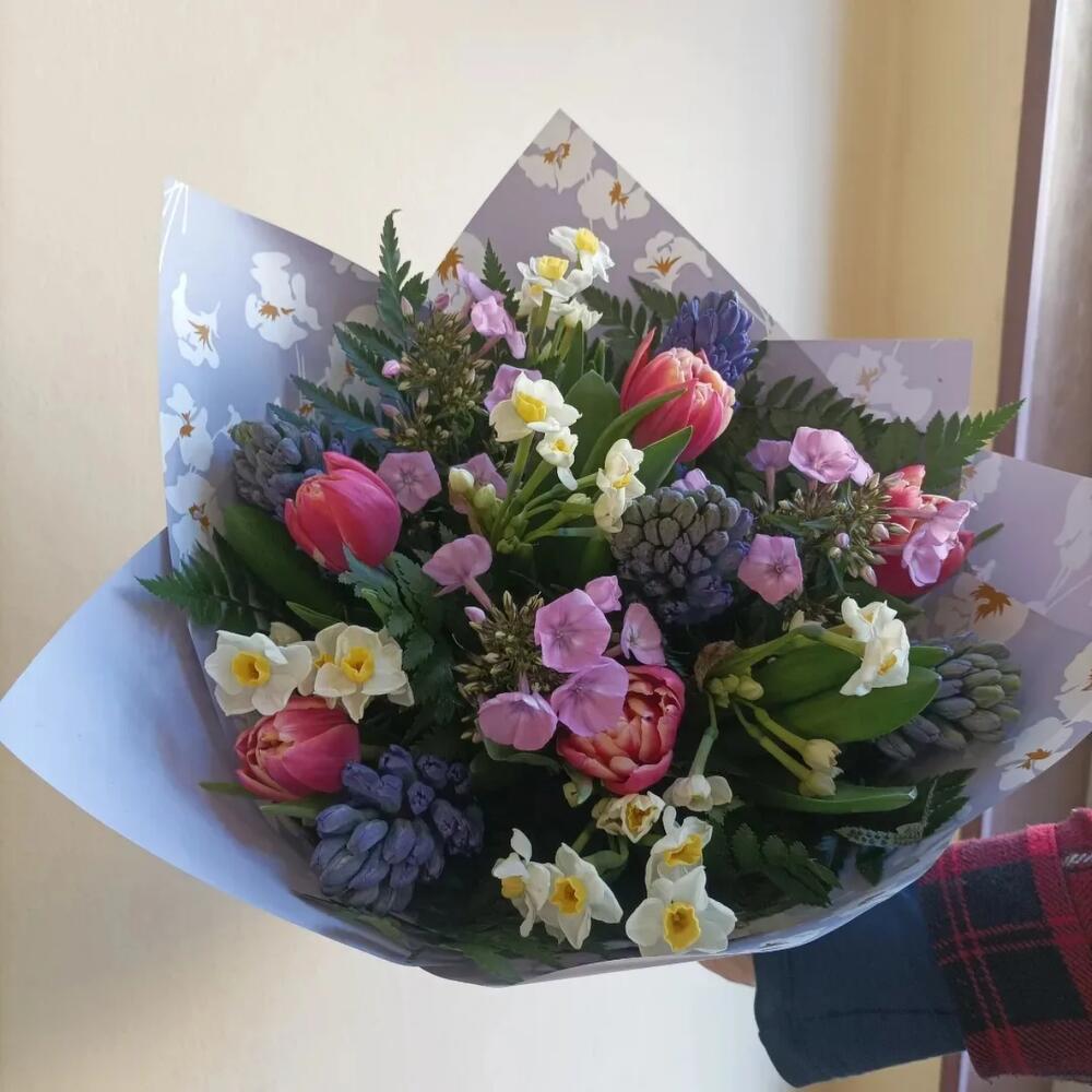 Букет гиацинт тюльпан нарцисс