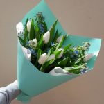 Тюльпан – 11 шт.Оксипеталум – 5 шт.Упаковка дизайнерская – 3 шт.Лента атласная – 2 шт.